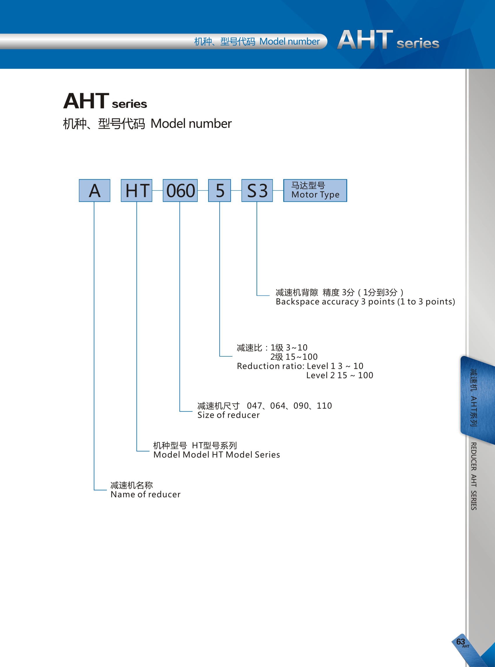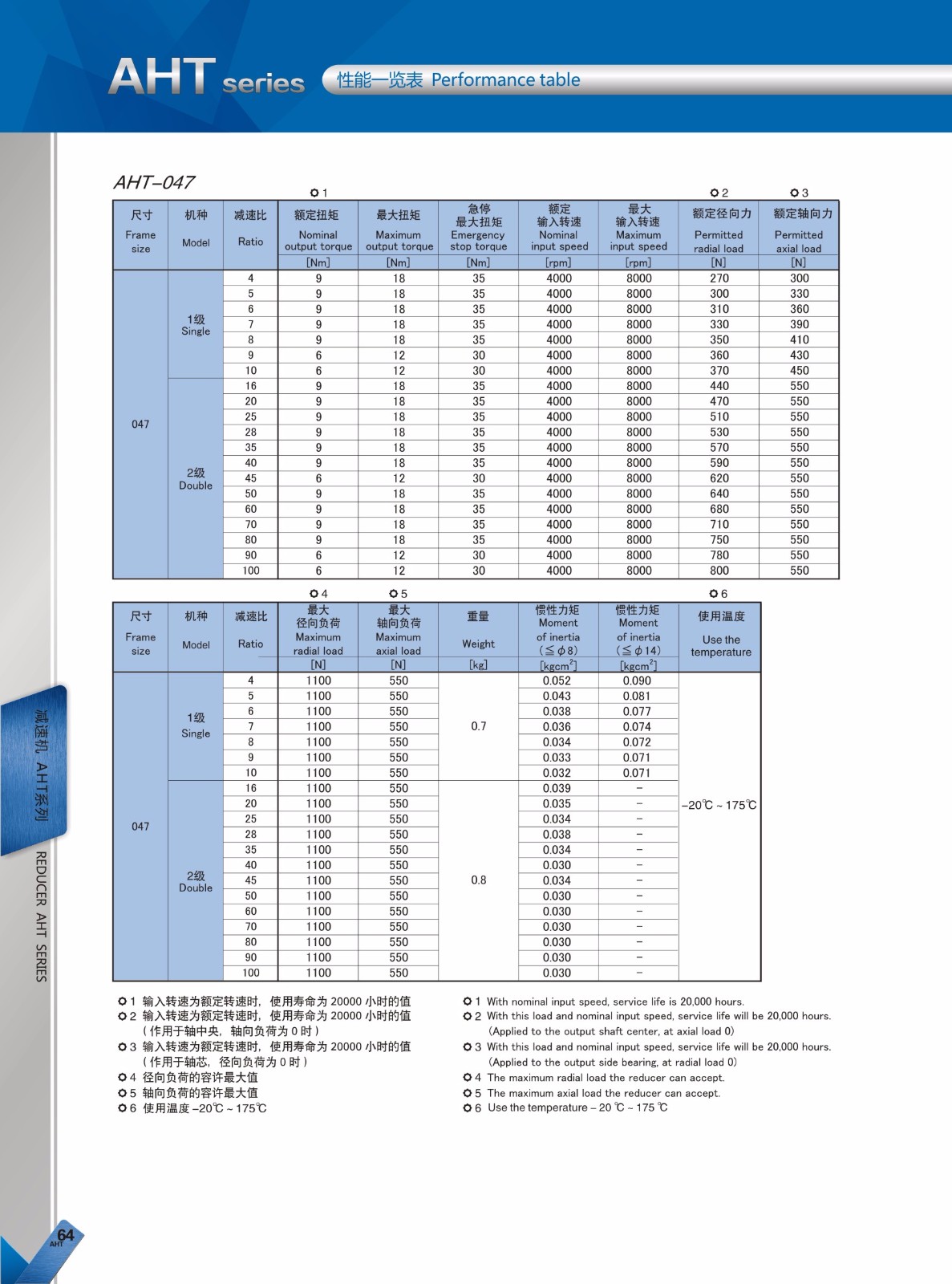 3.High load:Adopting taper roller bearing for the main output shaft to increase radial and axial load. Frame size 064•090 adopt ball bearing.